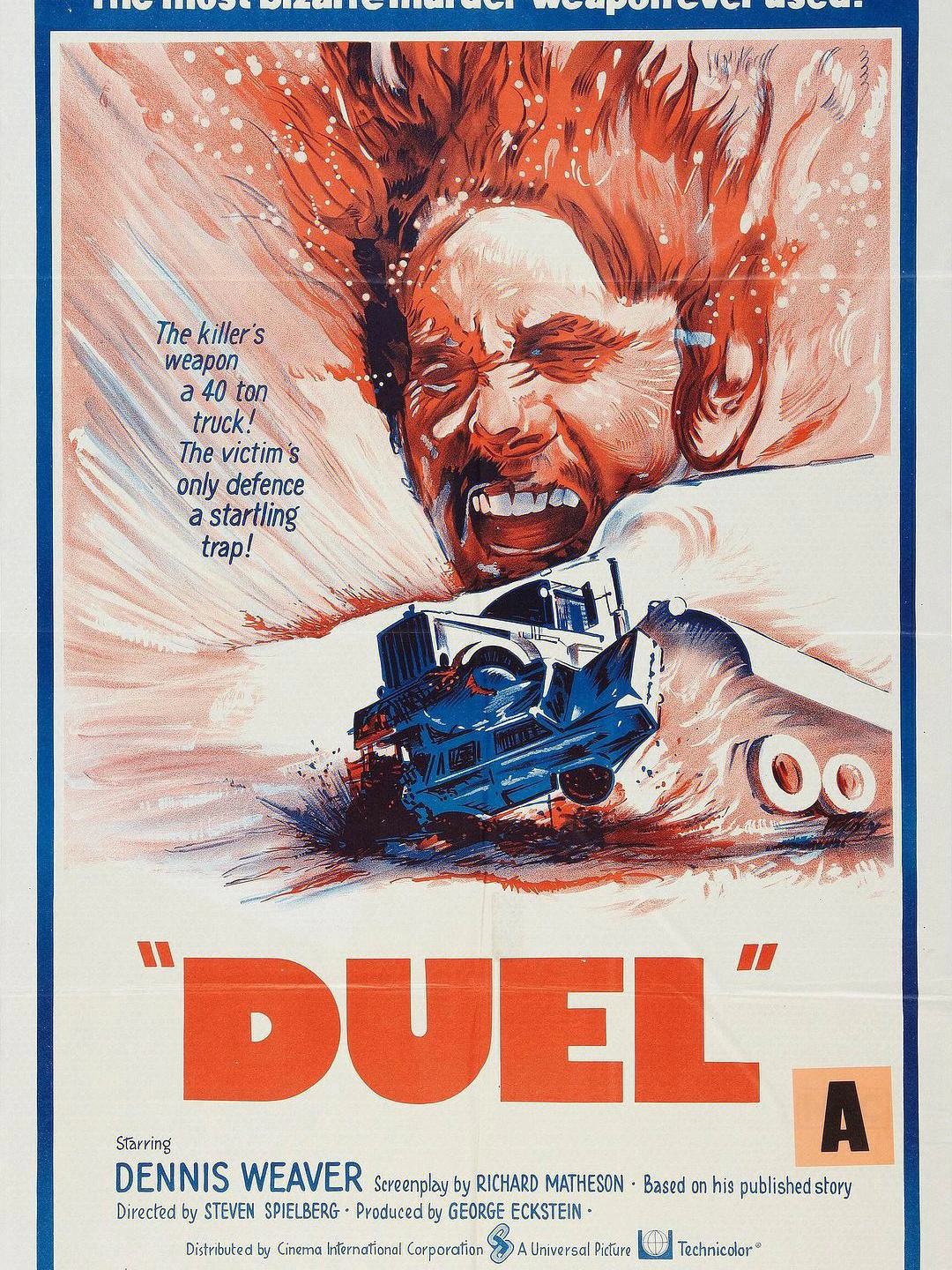 主人公是一个叫戴维·曼恩(丹尼斯·韦弗 Dennis Weaver 饰)的中年男人,这天他在空无一人的州际公路上独自驾车。随后一辆大卡车出现了,挡在戴维前面,他毫不客气地超过对方。而后两车在公路上互相超了对方的车,一开始戴维还气冲冲地想超过对方走在前面,后来他却发现大卡车司机像发疯一样想置他于死地。他只好停下来,在路边餐厅整顿一下准备继续上路,发现那辆形如鬼魅的大卡车停在外面,戴维甚至不知道司机是谁。随后大卡车一直追逐着戴维,他想尽办法也甩不掉这辆大卡车,他只好与这辆如影随形的卡车展开决斗……  本片是斯皮尔伯格的处女作,在美国获得了艾美奖最佳音效剪辑,斯皮尔伯格也因此片获得了拍摄《大白鲨》的机会。收起